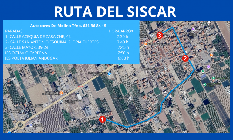 EL SISCAR (Ruta 30020224D) Autocares De Molina Tfno. 636 96 84 15
